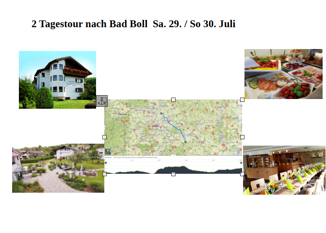 2023 geht die 2 Tagestour ins Landhotel Sonnenhalde nach Bad Boll am Rand der Schwäbischen Alb. Geplant sind wieder 3 Gruppen mit verschiedenen Strecken. Untergebracht sind wir im Landhotel Sonnenhalde. Reserviert sind 12 Doppelzimmer zu € 57.- pro Person incl. Frühstück. und 3 Einzelzimmer zu € 84.50 pro Person incl. Frühstück. Ein 3 Gang Menü gibt es für € 29.50, oder eine kleine Karte. Bitte meldet Euch bis 31.Mai unter Diese E-Mail-Adresse ist vor Spambots geschützt! Zur Anzeige muss JavaScript eingeschaltet sein! an.