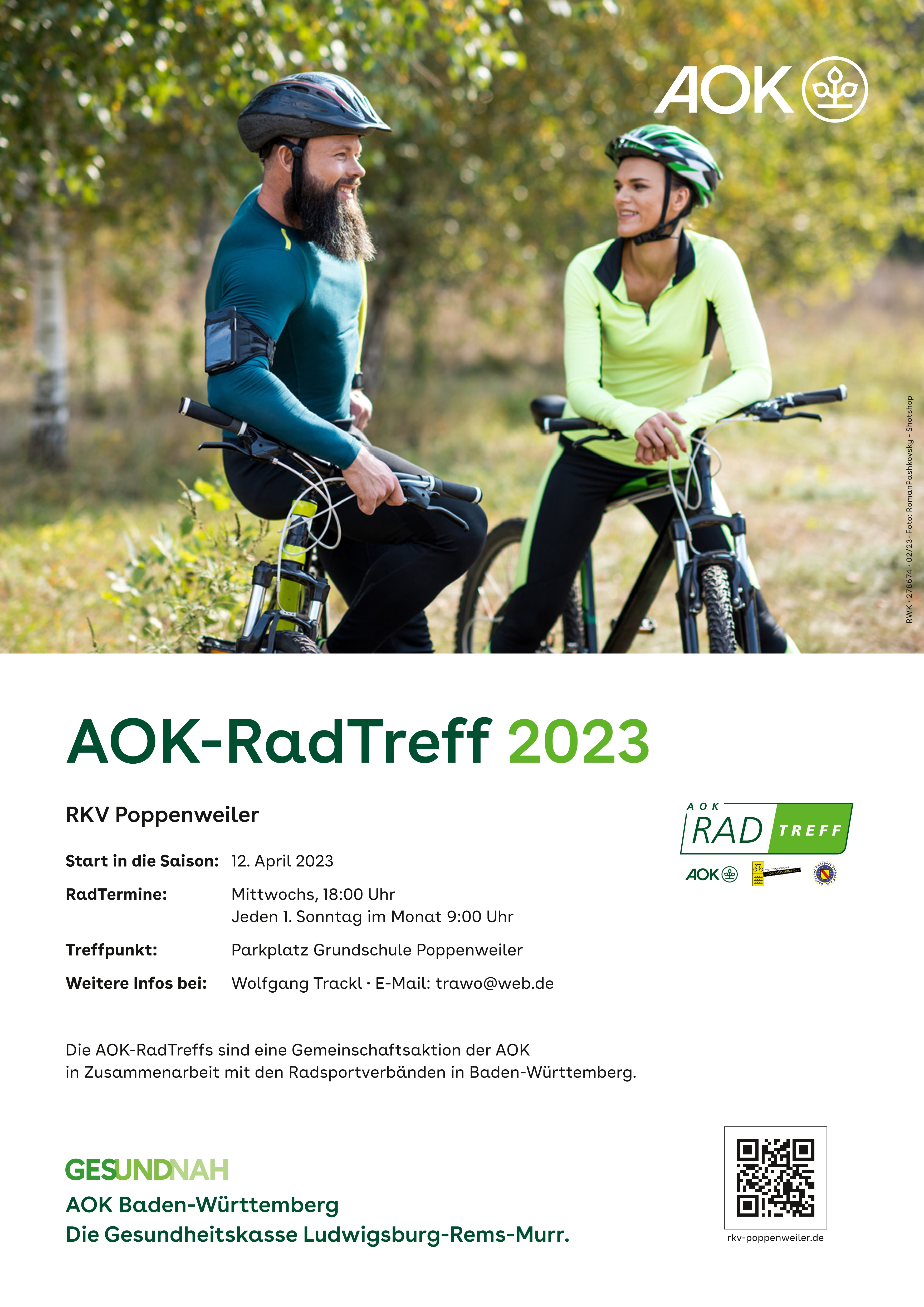 Die Tage werden wieder länger, die Uhr wurde auf die Sommerzeit umgestellt und am 12. April 2023 geht es wieder mit dem AOK Radtreff los. Wir treffen uns jeden Mittwoch um 18.00 Uhr und jeden ersten Sonntag im Monat um 9.00 Uhr zur gemeinsamen Radausfahrt. Ob mit Fahrrad oder E-Bike, sportlich oder gemütlich - für jeden und jede gibt es die passende Gruppe. Auch neue Radler und Radlerinnen sind ganz herzlich willkommen. Wir freuen uns auf Euch!