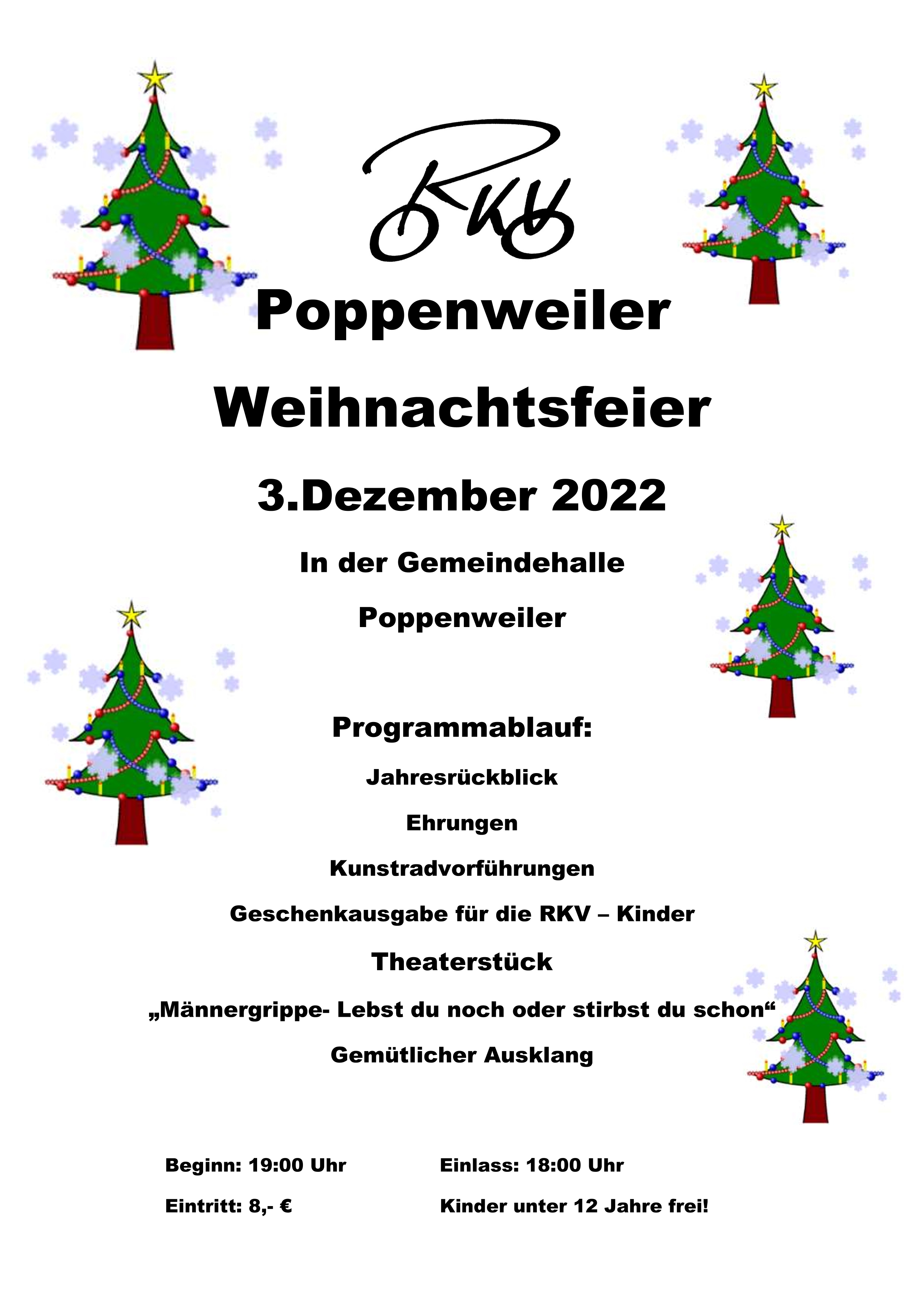 Der RKV Poppenweiler wünscht allen Mitgliedern, seinen Sportlerinnen und Sportlern sowie allen Freunden des Vereins ein frohes, gesegnetes Weihnachtsfest, eine erholsame Zeit sowie alles Gute und vor allem Gesundheit für 2022.