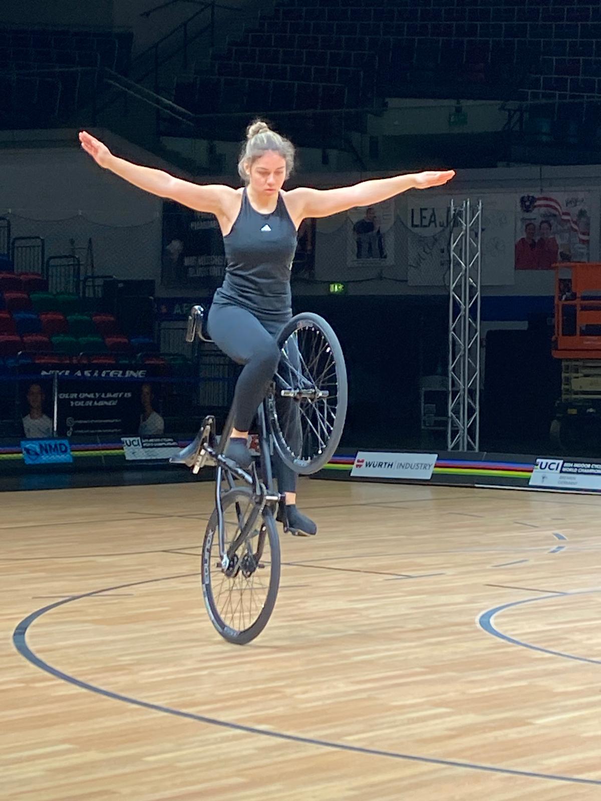 Dem vorausgegangen war ein wahrer Kunstradkrimi. In der Vorrunde am Freitag Abend lief es nicht gut für Lara. Nachdem zwei wichtige Elemente ihrer Kür nicht geklappt hatten, konnte sie sich nur ganz knapp mit einem Abstand von 0,64 Punkten für das Finale der besten vier Teilnehmerinnen qualifizieren.