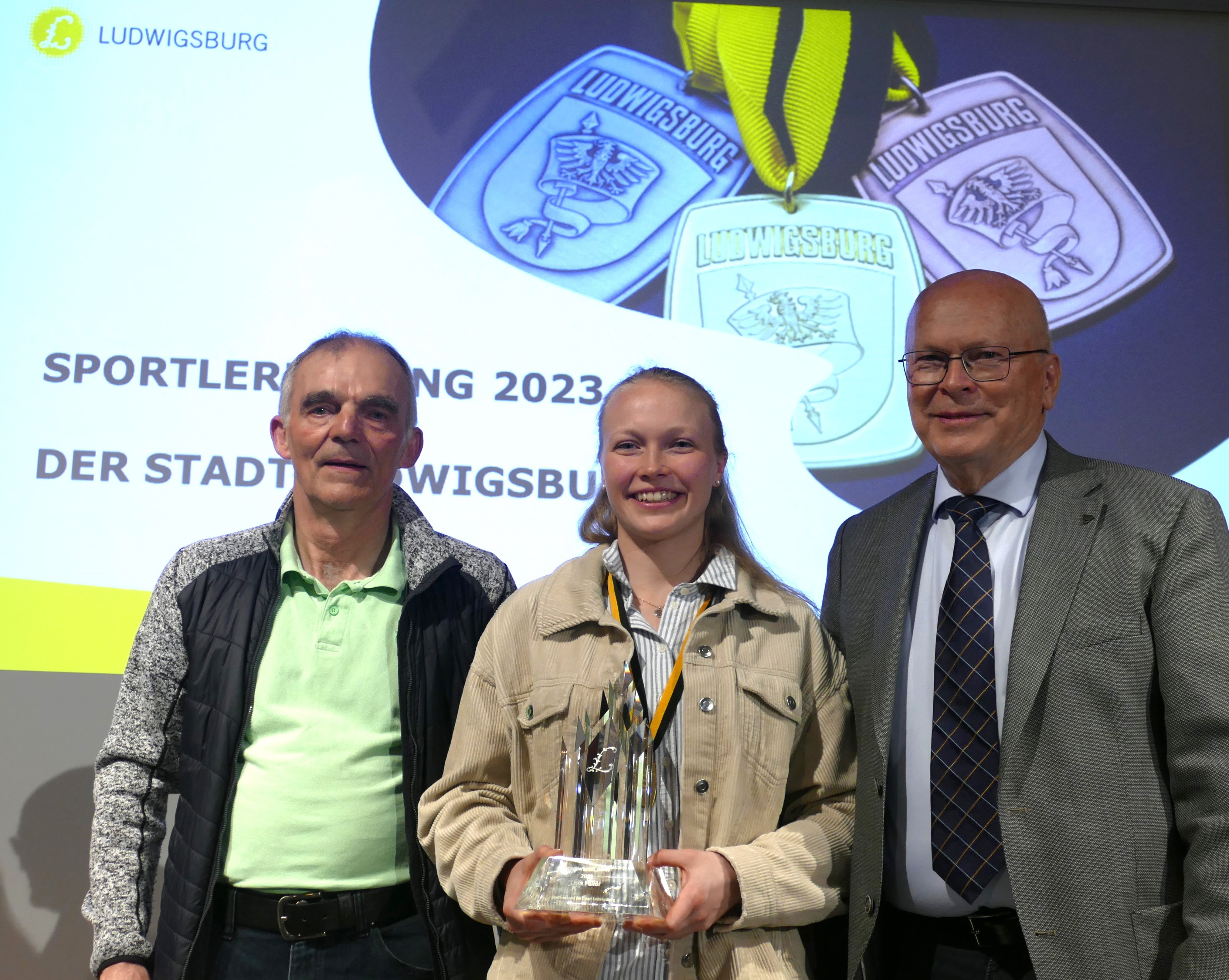 Bereits zum dritten Mal wurde Lara Füller Ludwigsburgs Sportlerin des Jahres. Nach 2019 und 2021 erhielt sie auch für das Jahr 2023 diese besondere Auszeichnung an der Sportlerehrung der Stadt Ludwigsburg im Beisein von unserem 1. Vorsitzenden Dietmar Zeiher und ihrem Trainer Paul Jacek verliehen.