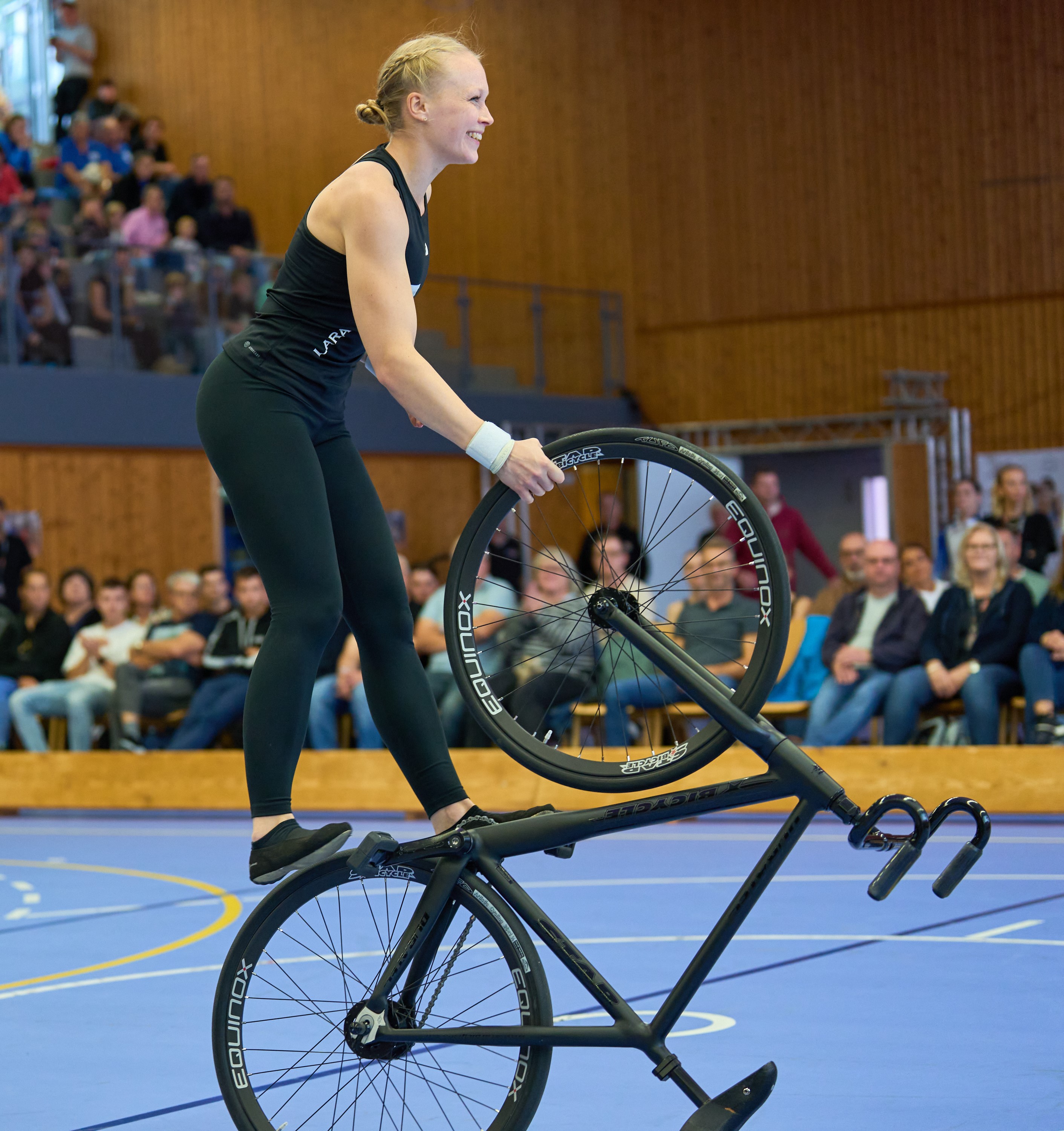 Dem vorausgegangen war ein wahrer Kunstradkrimi. In der Vorrunde am Freitag Abend lief es nicht gut für Lara. Nachdem zwei wichtige Elemente ihrer Kür nicht geklappt hatten, konnte sie sich nur ganz knapp mit einem Abstand von 0,64 Punkten für das Finale der besten vier Teilnehmerinnen qualifizieren.